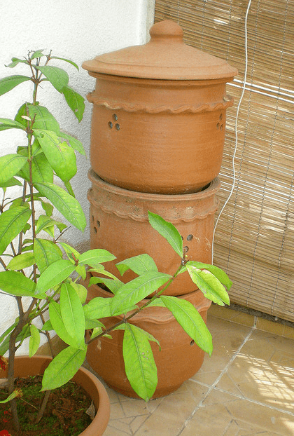 Se avete ancora qualche dubbio, se siete dei perfezionisti o volete una compostiera ‘very professional’ seguite l’esempio di questo video e avrete una ‘compostiera fai da te’ da fare impallidire il più abile dei bricoleur. Ma se al contrario la manualità non è il vostro forte ripiegate su una compostiera da balcone già pronta come quella in terracotta della foto che è molto decorativa.